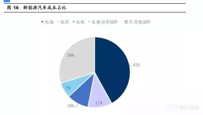 电池环节成本占比最高 ,技术与成本核心在正极 。从新能源汽车的成本构成来看,电池成本相对整车环节占据 42%,电机电控成本占比相近,分别占据10%以及11%。