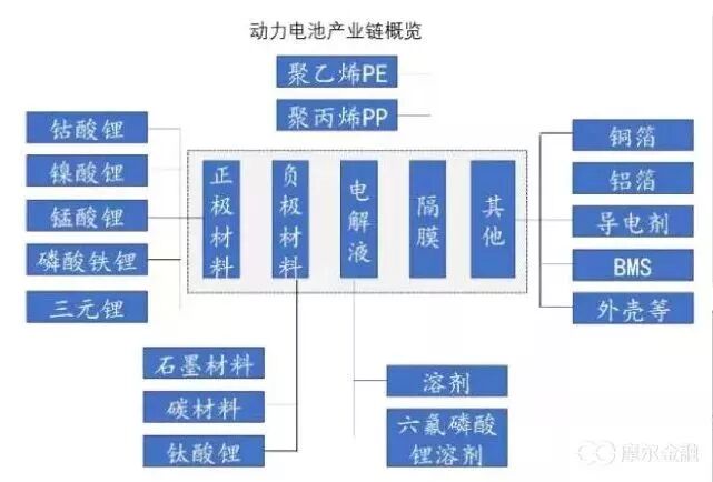 中游环节电池产业链相对较为复杂,主要由正极、负极、隔膜以及电解液组成。