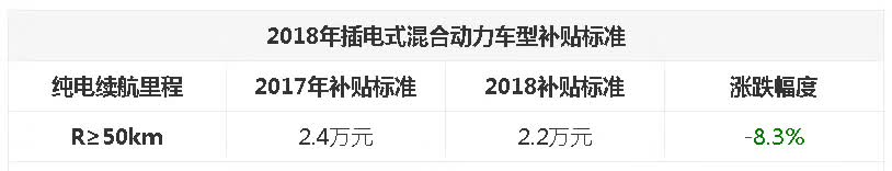 相比纯电动汽车补贴的大幅变动,插电式混合动力车型的补贴只是微降了8.3%。