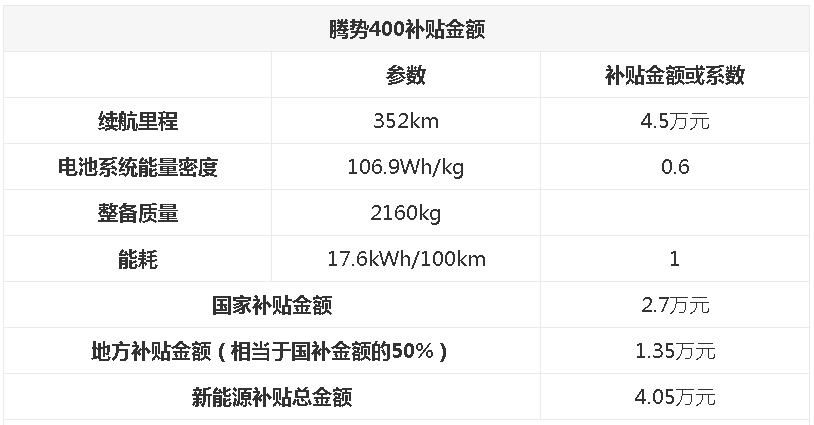 选择腾势400是因为它是一款采用磷酸铁锂电池的车型。磷酸铁锂电池是否真的如前文分析所说被判死刑?看看腾势400能够获得多少补贴就明白了。