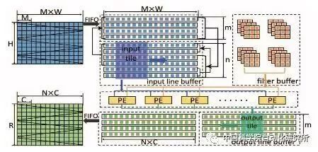中国科学院计算机体系结构国家重点实验室在顶级会议HPCA2017上提出了一种基于数据流的神经网络处理器架构,以便适应特征图、神经元和突触等不同层级的并行计算,为了实现这一目标,该团队对单个处理单元PE进行重新设计,使得操作数可以直接通过横向或纵向的总线从片上存储器获取,而非传统PE只能从上至下或从左至右由相邻单元获取。该芯片采用了TMSC 65nm工艺,峰值性能为490.7 GOPs/W。
