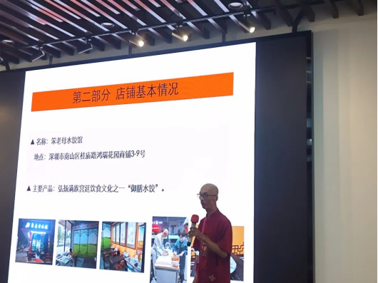 第二个分享项目是深圳市千秀供应链有限公司的“黑酌茶院”项目。千秀茶院是一家以中国茶文化美学为设计理念, 以传统元素融于现代国潮为基调,满足商务、社交、休闲、娱乐需求的新中式茶文化茶饮店。千秀茶院以标准化制作,以场景式体验为模式,以茶饮茶点茶空间为载体,是具有新中式茶文化、社交休闲特色的连锁茶饮。茶院聚焦白领、年轻势力主流消费群体, 采用天然健康食材,以茶饮为主要形态,引入智能萃茶设备,将中式茶叶与西式咖啡萃取技术相融合,致力于打造一个标准化流程的产品线。