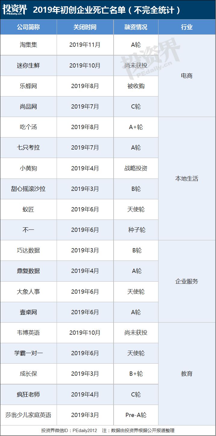 2019创投圈死亡名单