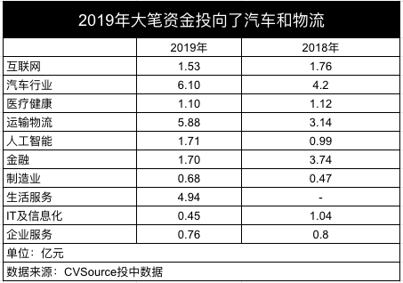 2019年大笔资金投向了汽车和物流