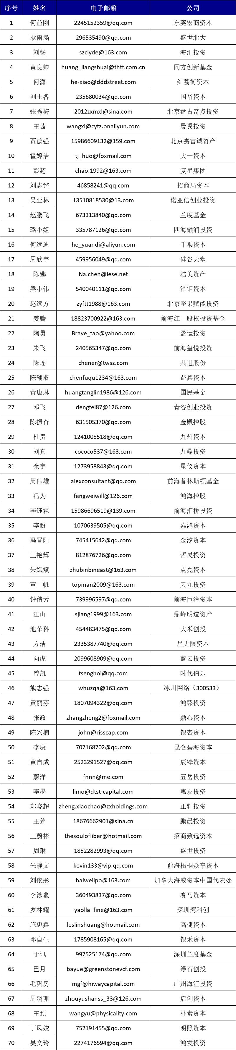 感谢大家来参加【2018通信物联网产业链(深圳南山)资本对接会】,由于现场交流时间有限,亿融创服特整理了参加本次会议的部分投资机构联系方式,如果你的项目不错,可以把BP发给他们!